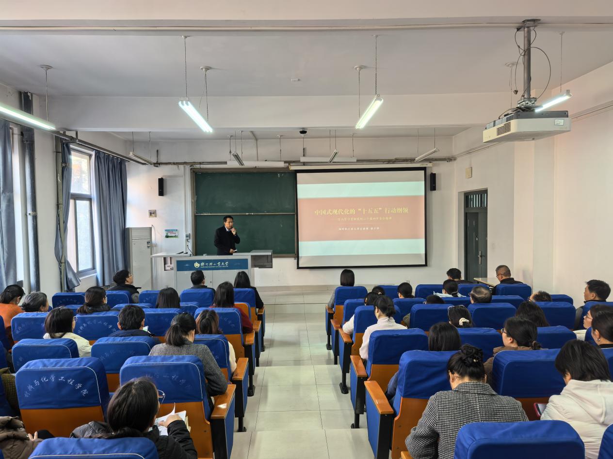 为深入学习领会、全面准确把握党的二十届四中全会精神的重大意义和核心要义,引导全院教师将思想和行动统一到党中央的决策部署上来,11月20日,禁忌书屋 在化工楼218会议室举行专题学习会,特邀校党委讲师团成员、马克思主义学院张少停博士作专题辅导报告。学院全体教师参加本次学习。