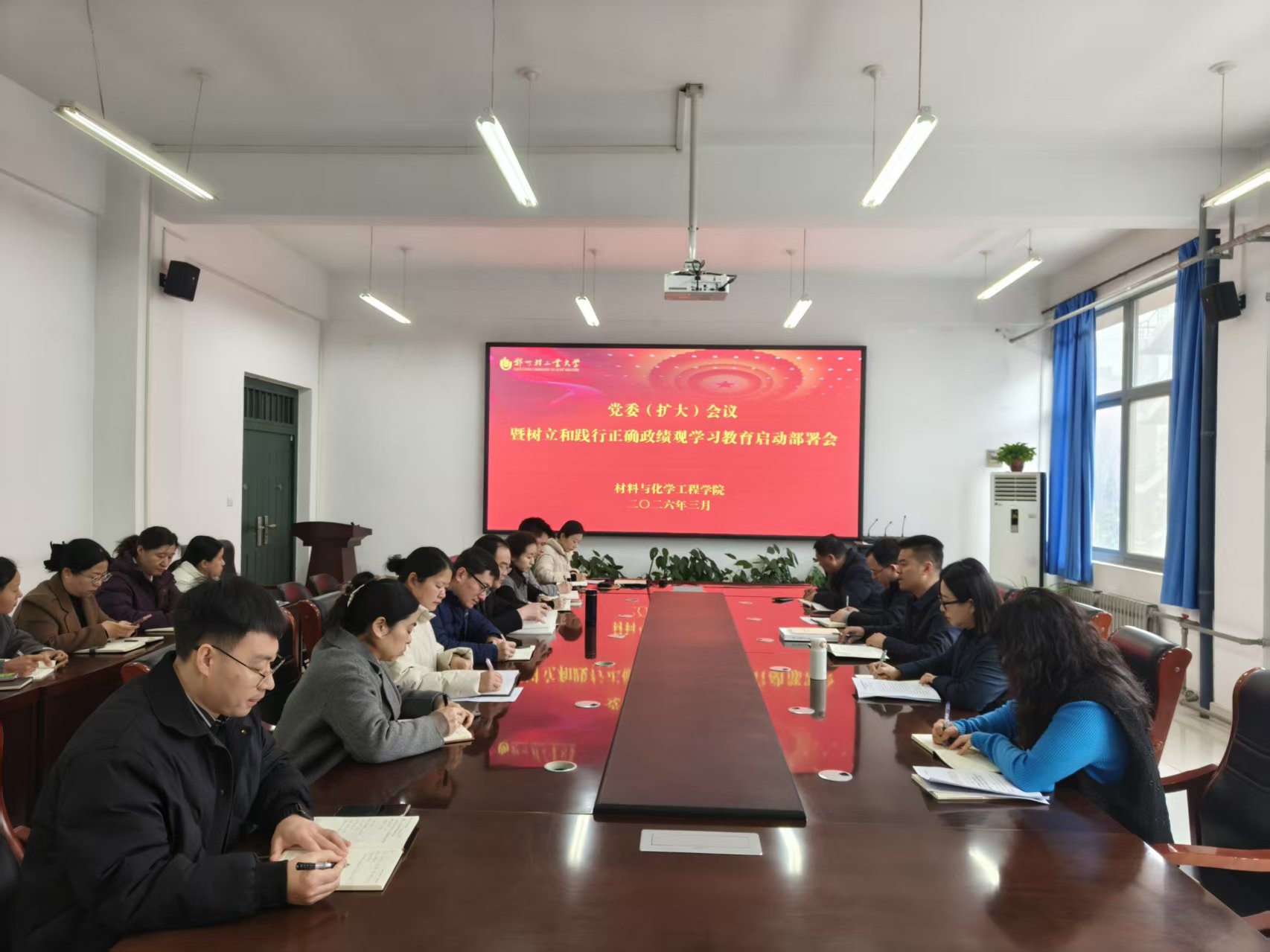 会上,院长张晓静传达学习习近平总书记关于树立和践行正确政绩观的重要指示精神,深刻阐释开展学习教育的重大意义、目标要求与实践路径,强调要坚持以人民为中心的发展思想,把为民造福作为最重要的政绩。副院长张永辉通报学校党委工作提示,明确学习教育重点任务、时间安排与工作标准。学院党委副书记孟牒通报学校学习教育工作方案有关情况,对学习教育实施方案作详细说明,确保各项任务落地落细。