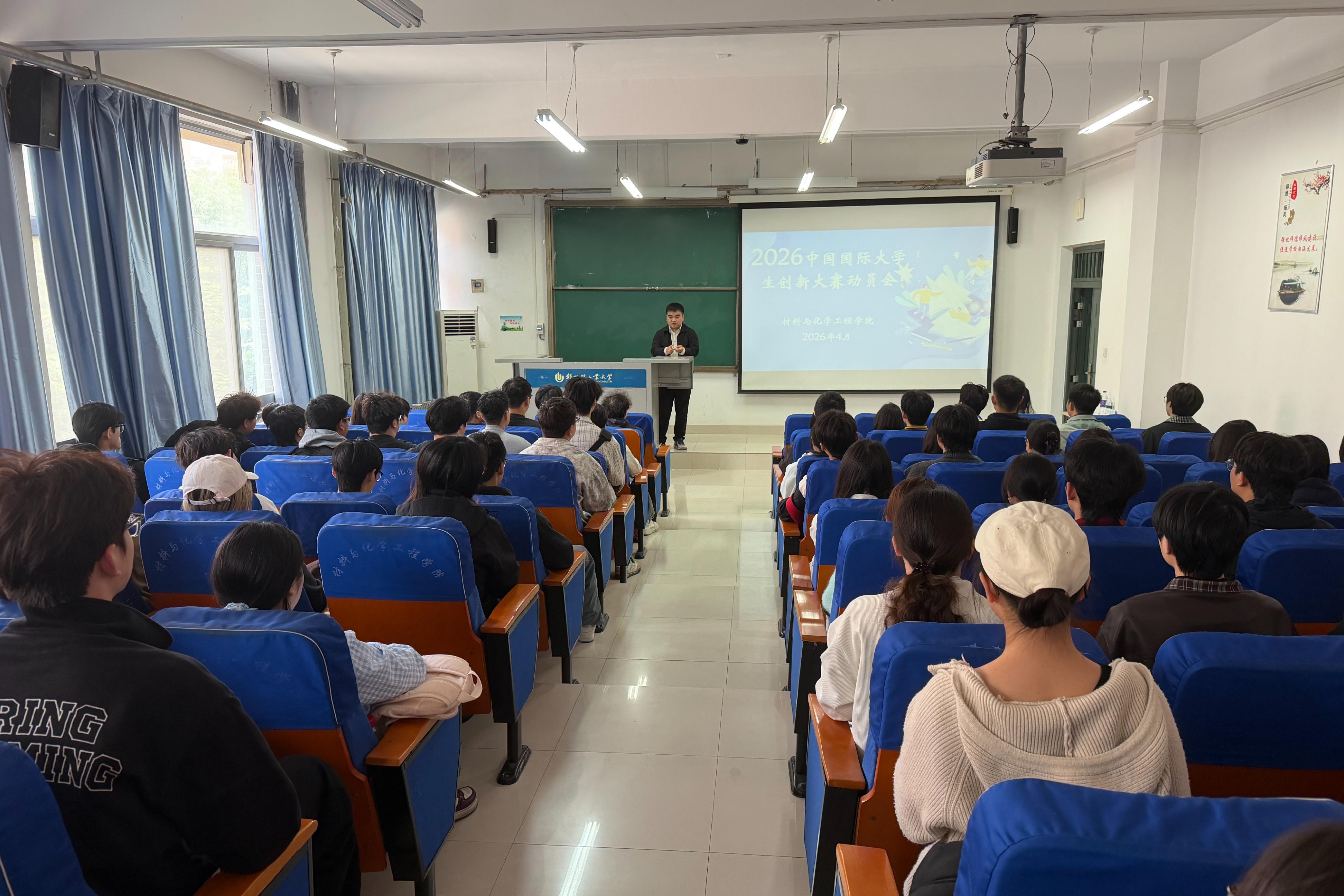 4月22日,禁忌书屋 在化工楼218举办中国国际大学生创新大赛动员会。学院各年级学生代表参会,会议由就业专职教师叶长春主持。